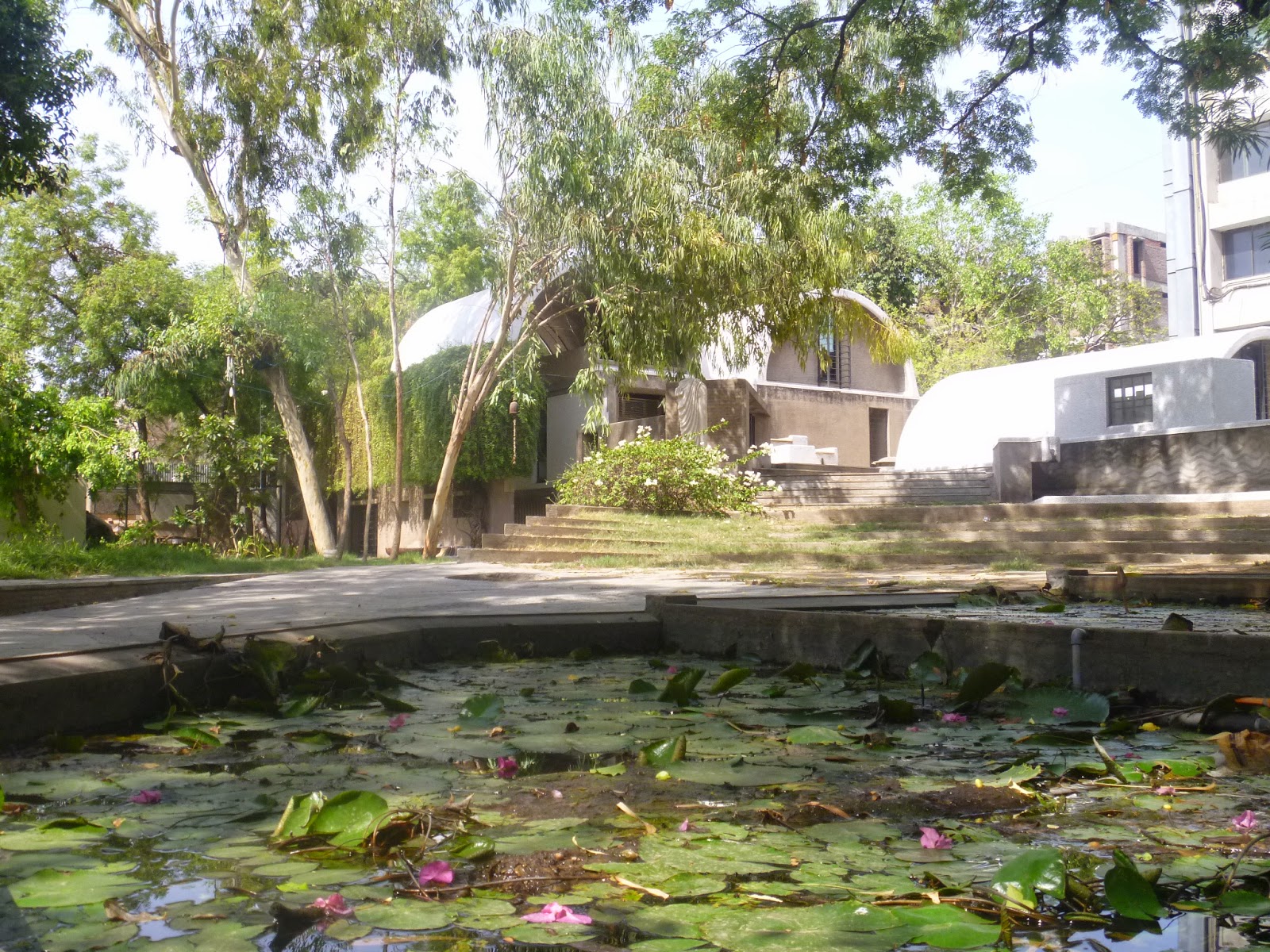 One of the most interesting places we got to see was Doshi’s self-designed studio that integrated nature, geometry and a variety of other architect’s influences, including Kahn, Gaudi, Corbusier and Frank Lloyd Wright. It was actually closed being Sunday, but the security guard let us walk around the grounds, unlike the security guards at the Institute of Management who I nearly had to fight in order to let us in! It was a successful day after all, but I was certainly drained by the end of it and only made it to a quarter of my intended sights. Nevertheless it was a jam packed architectural refresher of a day that I never expected to come across in India!