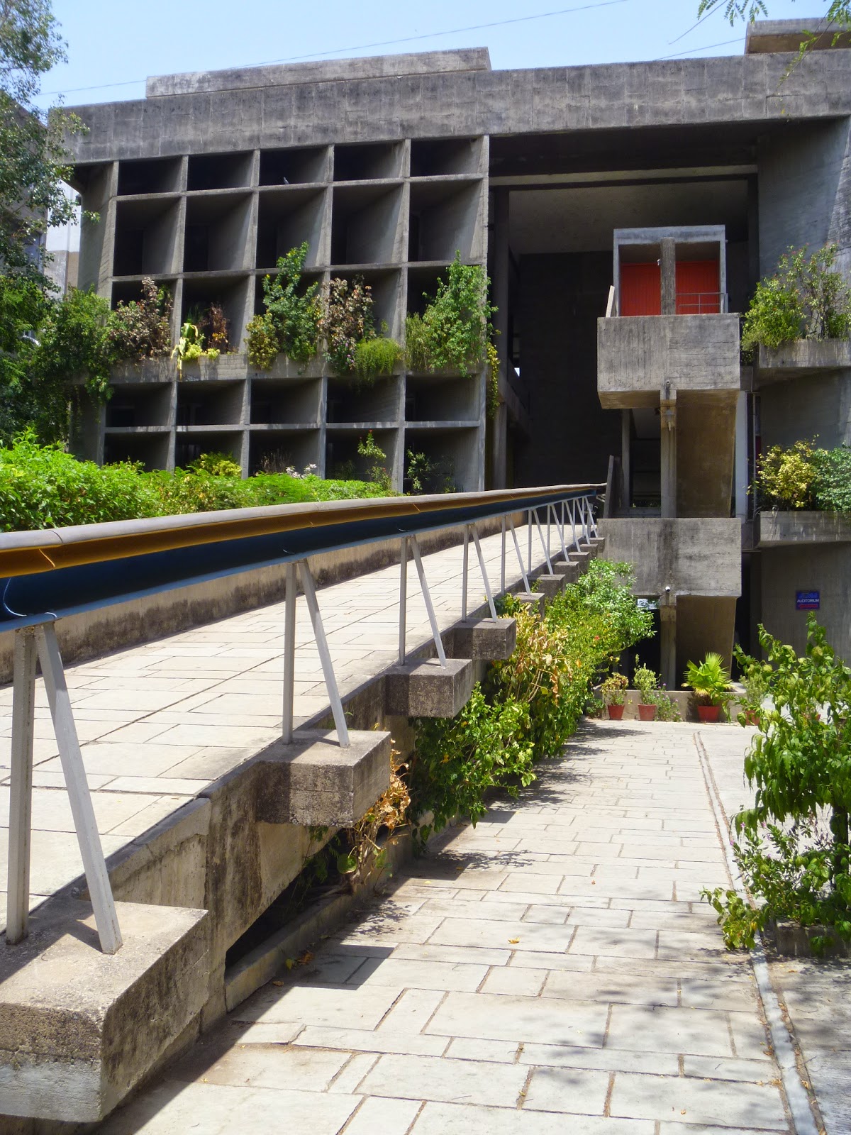 After not having much luck locating the historical buildings, we switched time periods to mid-20th century modern architecture, of which Ahmedabad actually has lots to offer! Le Corbusier, Louis Kahn and their Indian equivalent B. V. Doshi have all built structures in this city. It was really interesting visiting these modernist designs in person, especially in such a different context, seeing how they have survived in comparison to ordinary Indian structures. Of the ones we were able to find (since architecture designed homes are not registered on rickshaw driver’s city information guide) we came across one of Corbusier’s buildings that is now used for a museum and has physical models and explanations of all the other architectural works of the city on display. I was glad to come across this since I was beginning to realize I might not be able to visit all 40 locations on my list!